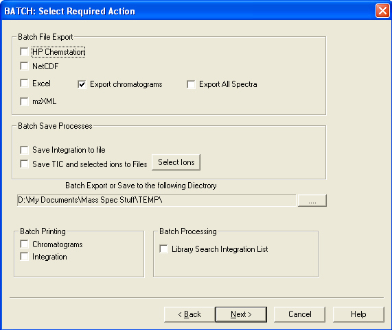 Excel format gives you the option of exporting just chromatograms spectra or both.